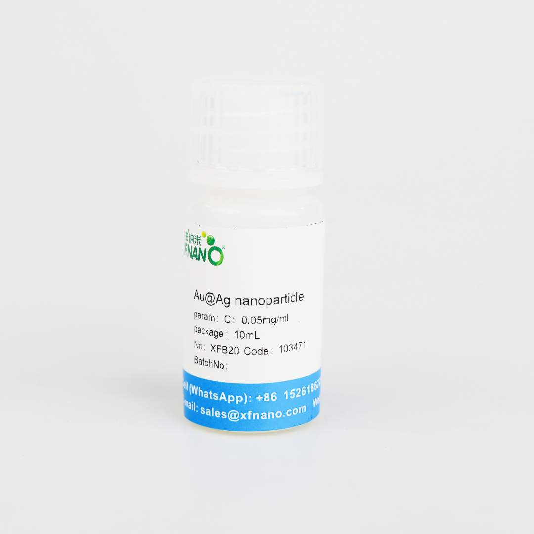 The product is a core-shell structure, with a core of gold nanoparticles and an outer layer of metallic silver, the size of the core and shell can be adjusted according to customer requirements. The product is currently used in a variety of related fields such as surface reinforced Raman substrates, food safety testing, antibacterial product additive materials, etc.