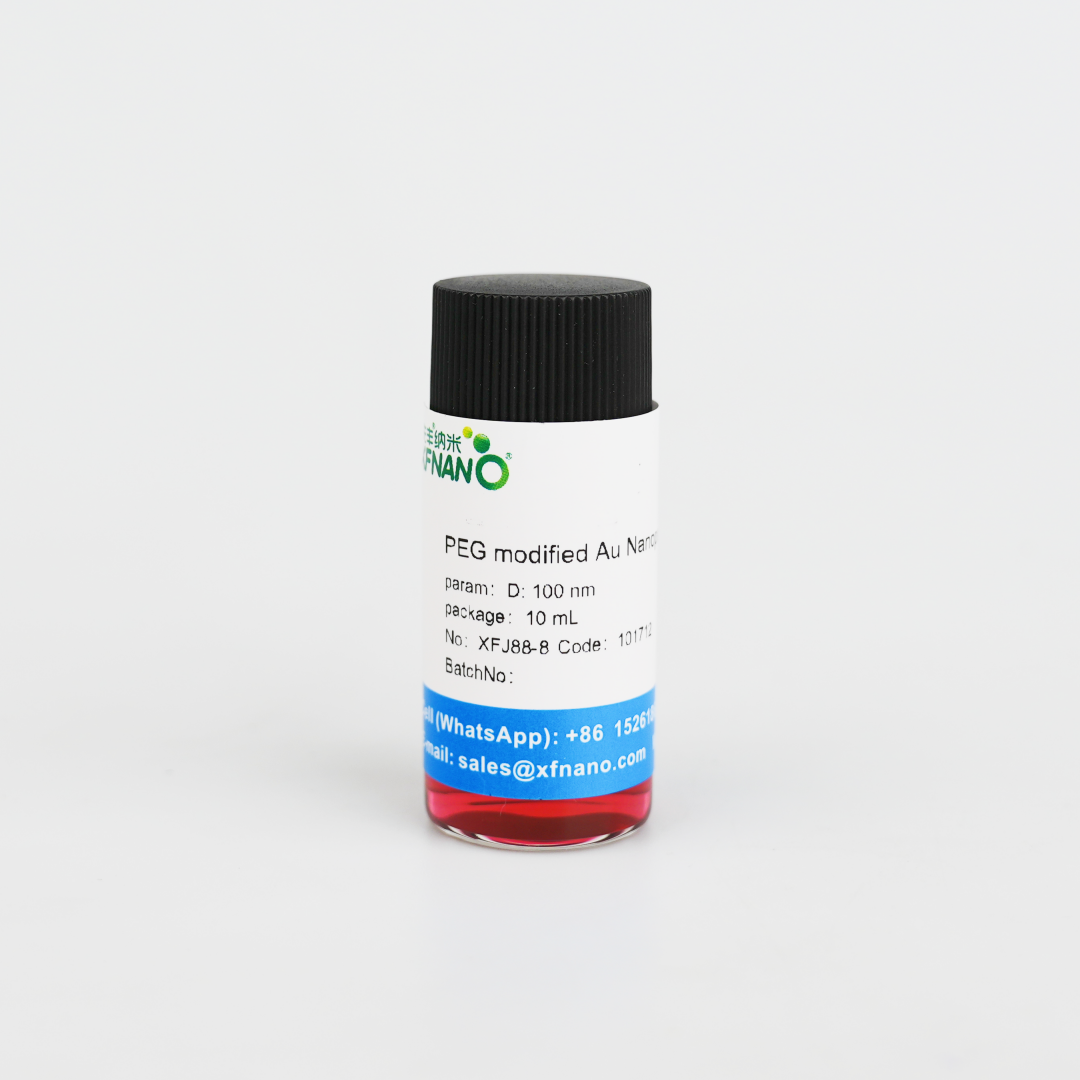 The PEGylated spherical gold nanoparticles provided by Xianfeng Nano default to carboxyl end, and can also provide amino end and methoxy end.